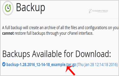 Al termine del backup di cPanel, riceverai una notifica e sarà disponibile per il download nell'elenco "Backup disponibili per il download" nella pagina Backup completo.